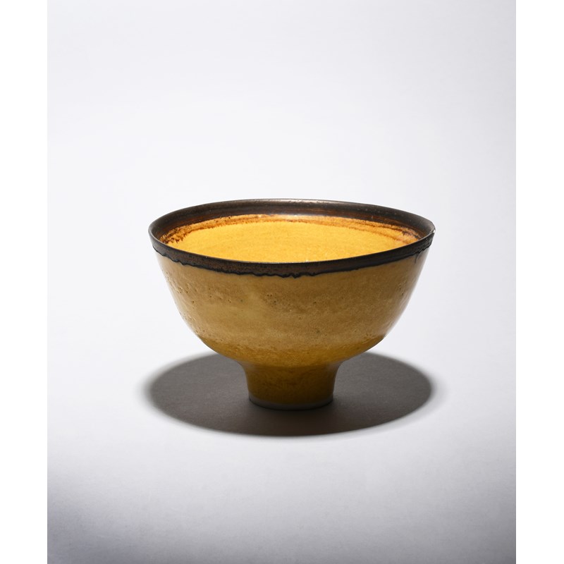 ‡Dame Lucie Rie DBE (1902-1995) a porcelain footed bowl with bronze rim