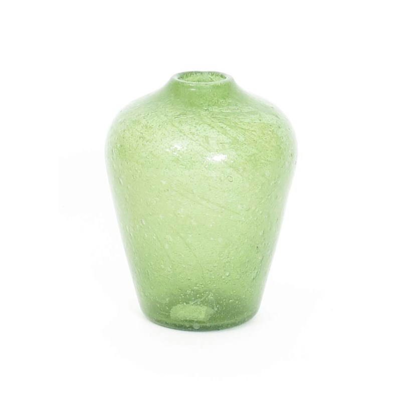 A James Couper & Sons Clutha glass vase designed by George Walton, shouldered form, bubbled green glass with white glass striations, unsigned, 16cm. high