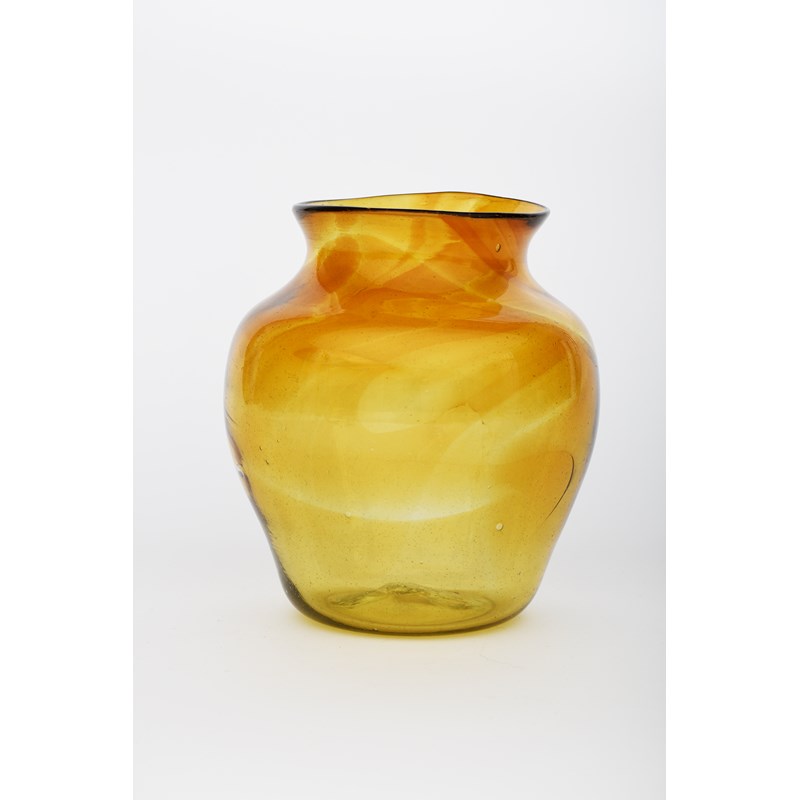 A James Couper & Sons Clutha glass vase possibly designed by Dr Christopher Dresser, shouldered form with flaring rim, amber glass with striations and air bubble inclusions, unsigned, 18cm. high