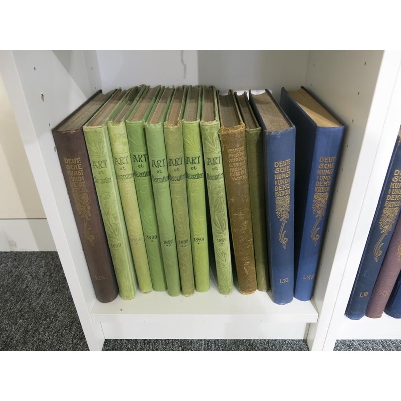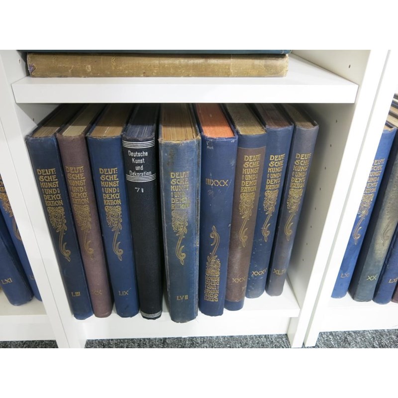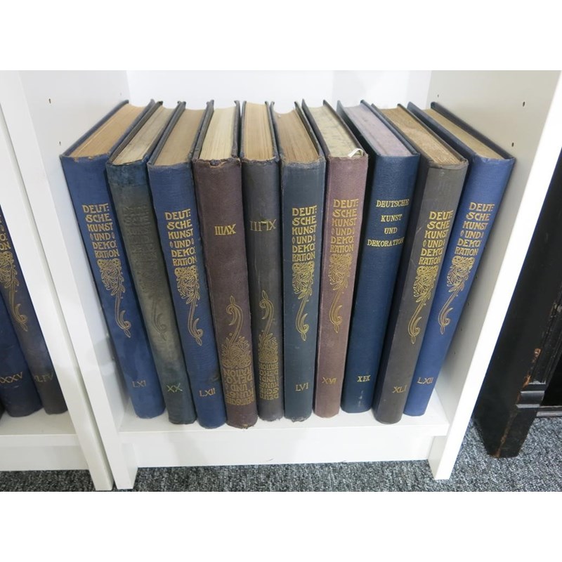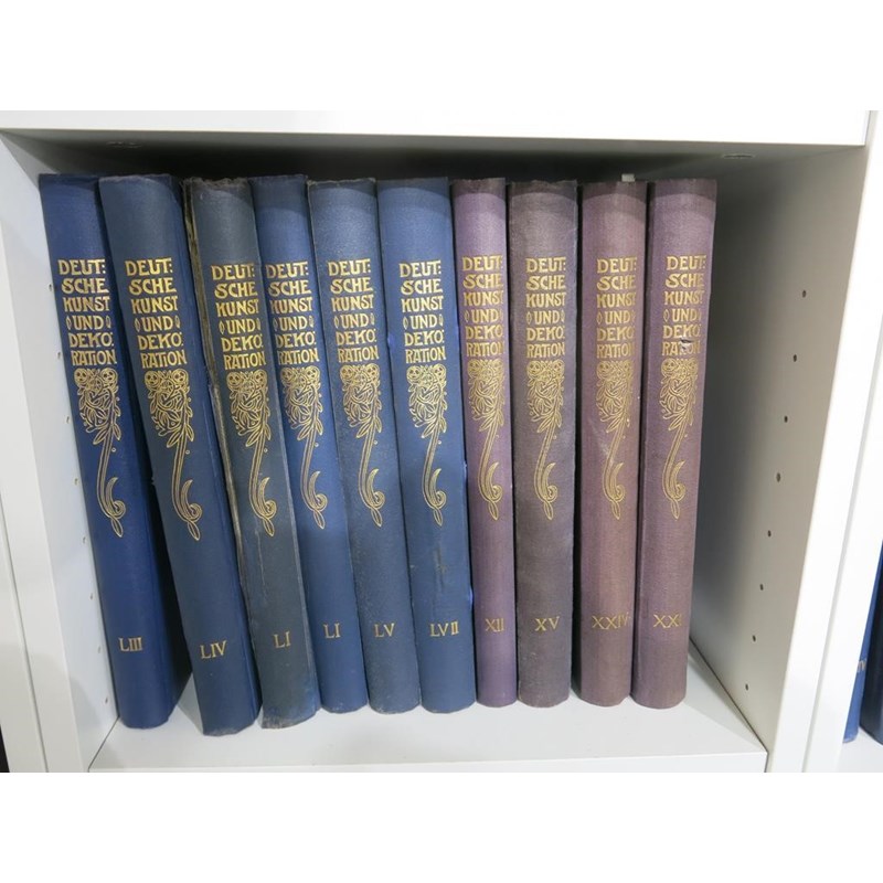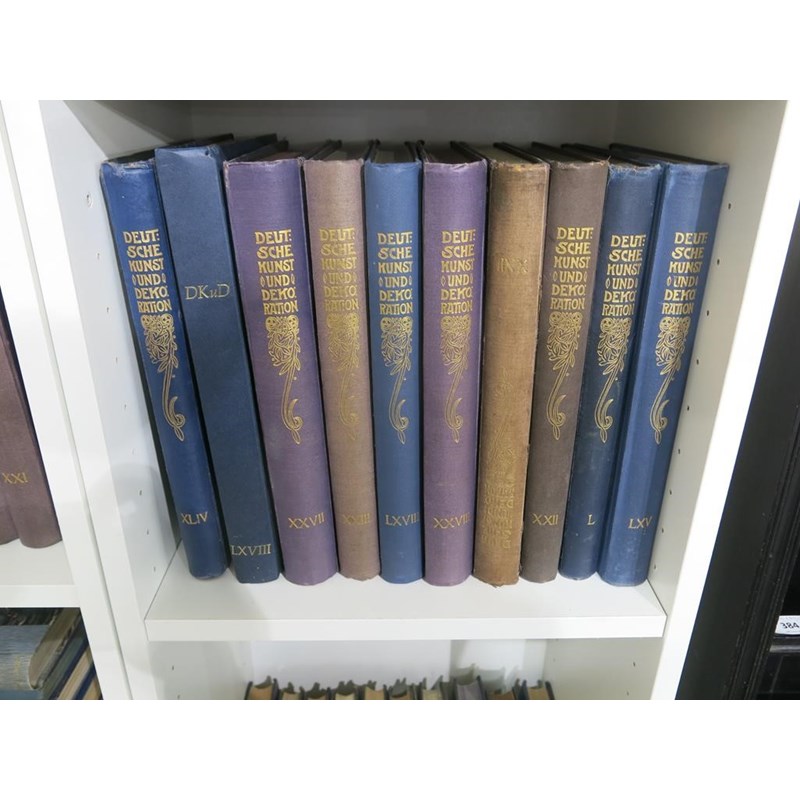 Deutsch Kunst und Dekoration, a long rung of volumes, published by Alexander Koch, Darmstadt, mainly in original bindings, (a lot)