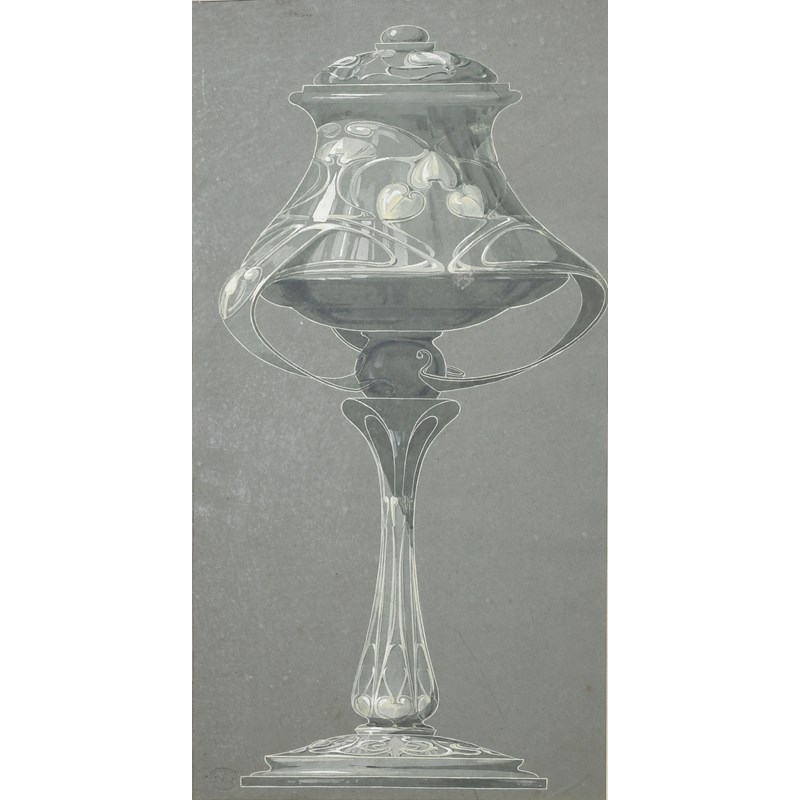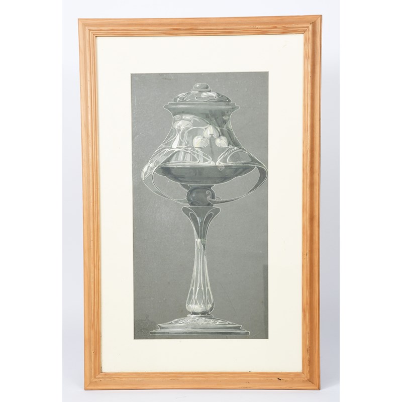 Study for a silver cup, watercolour and gouache on grey paper, framed stamped ESK 49 x 25.5cm.