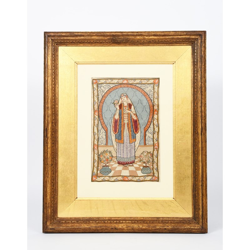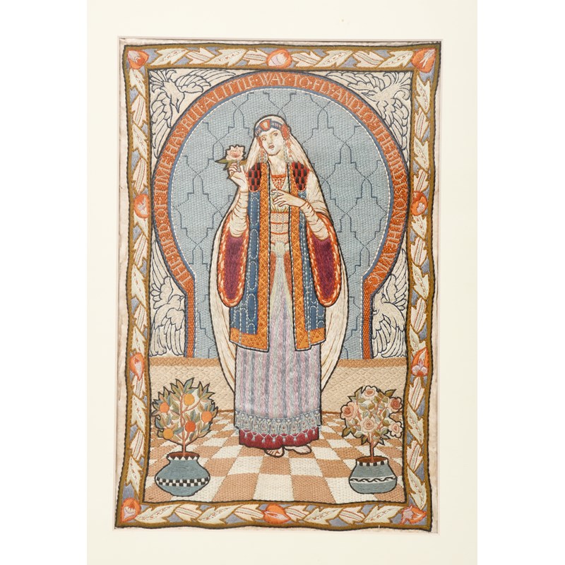 'The Bird of Time has but a Little Way to Fly' a Glasgow School silk embroidery panel, rectangular,