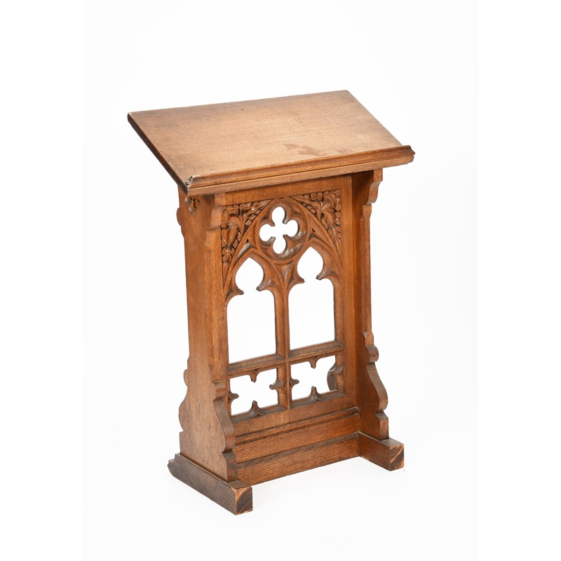 A Gothic Revival oak lectern, with carved tracery design, unsigned, 90cm. high, 61cm wide