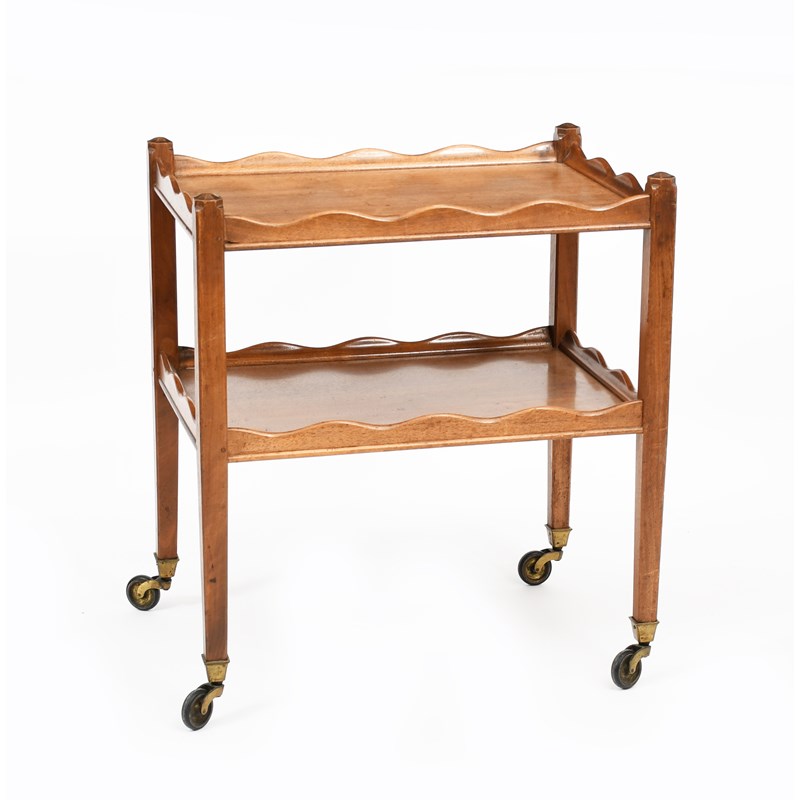 A Cotswold school walnut serving trolley in the manner of Ernest Gimson, rectangular section with