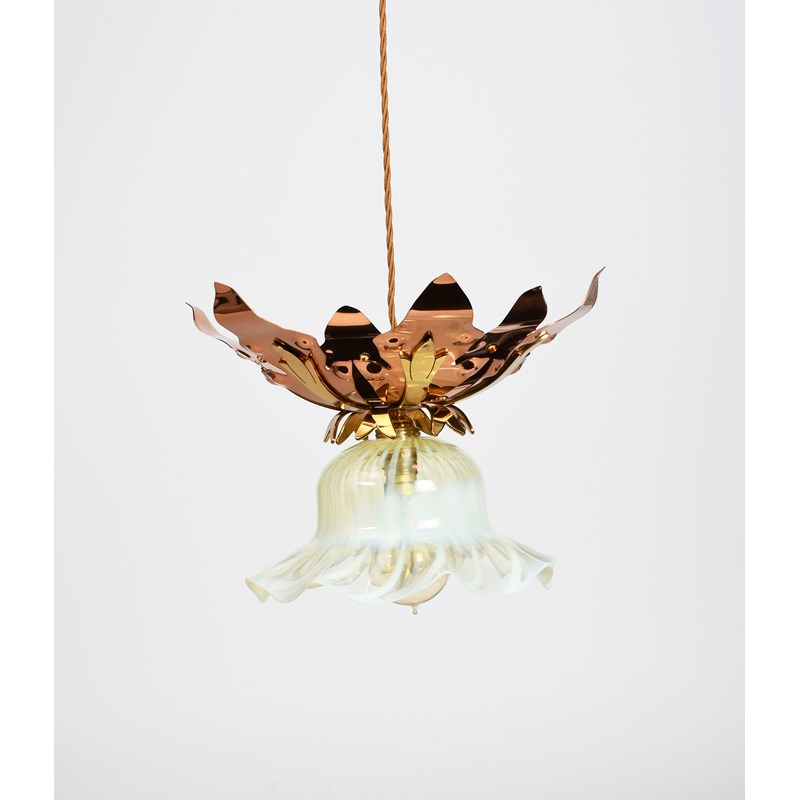 A modern copper and vaseline glass ceiling light by Christopher Vickers, originally designed by