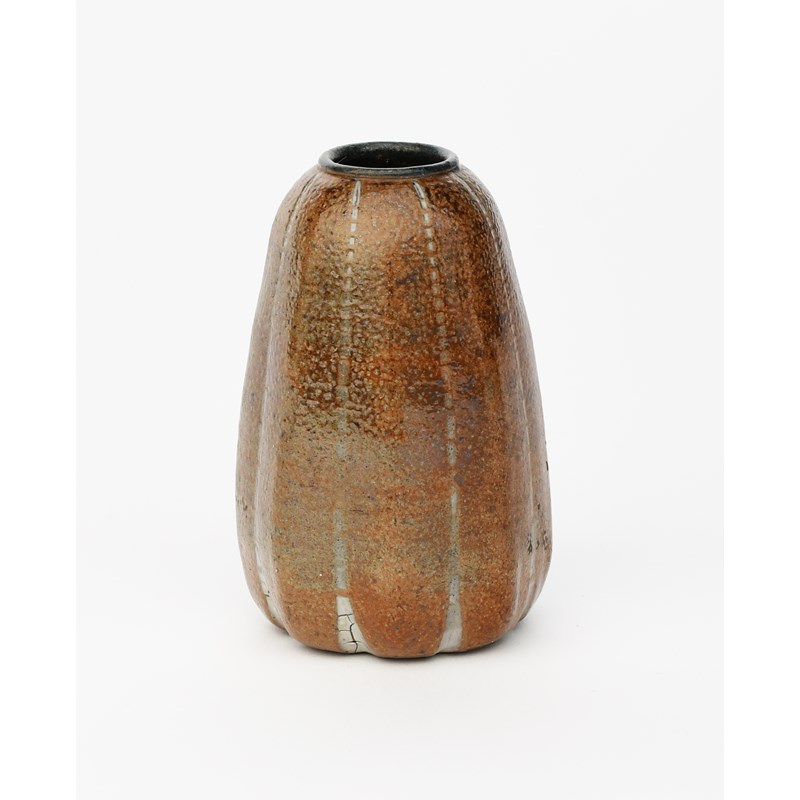 A Martin Brothers stoneware gourd vase by Edwin and Walter Martin, dated 1908, tapering, ribbed cylindrical form, glazed tan with white highlights, incised 1-1908 Martin Bros London & Southall, 9.3cm. high