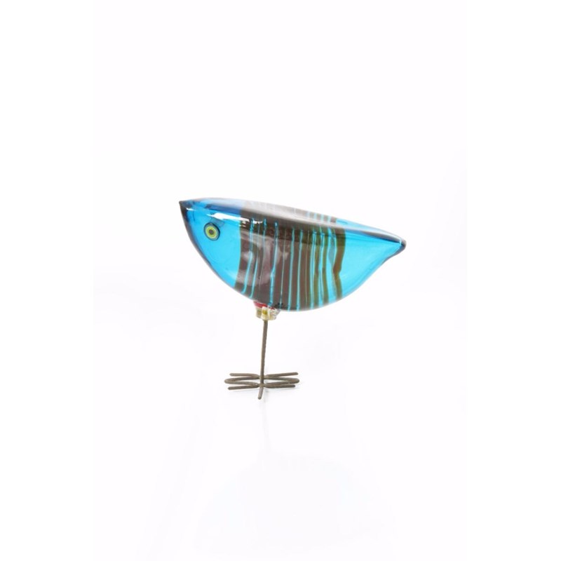 A Vistosi Pulcini glass bird designed by Alessandro Pianon, the blown blue glass body internally decorated with red stripes, applied glass cane eyes, on copper feet unsigned 18cm. high