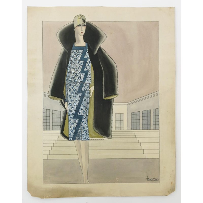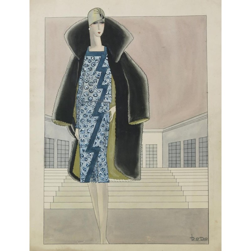 ‡ Dorte Clara Dodo Burgner (1907-1998) Woman in a Blue Dress and fur coat a pen