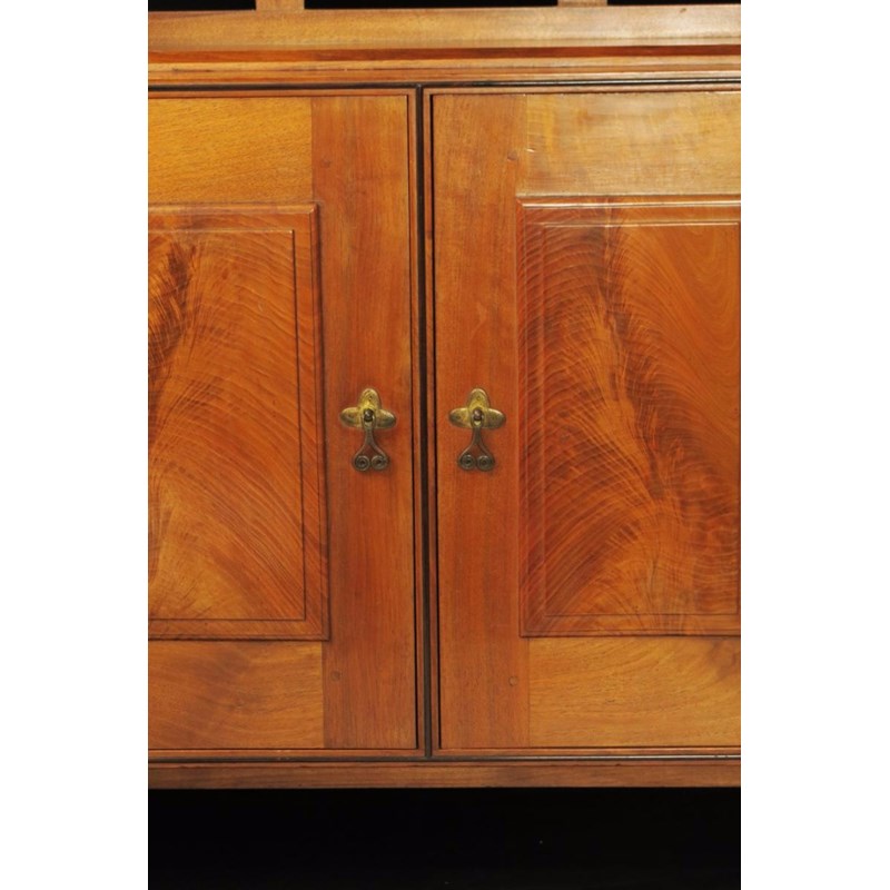 Ernest Gimson & The Cotswold Group of Craftsmen, Leicester Arts and Museum Services, page 59 catalogue F.30 for Ernest Gimson's variation on this cabinet in oak, and page 73 catalogue F.55 for the original design drawing by Peter Waals (including the sleigh feet).
