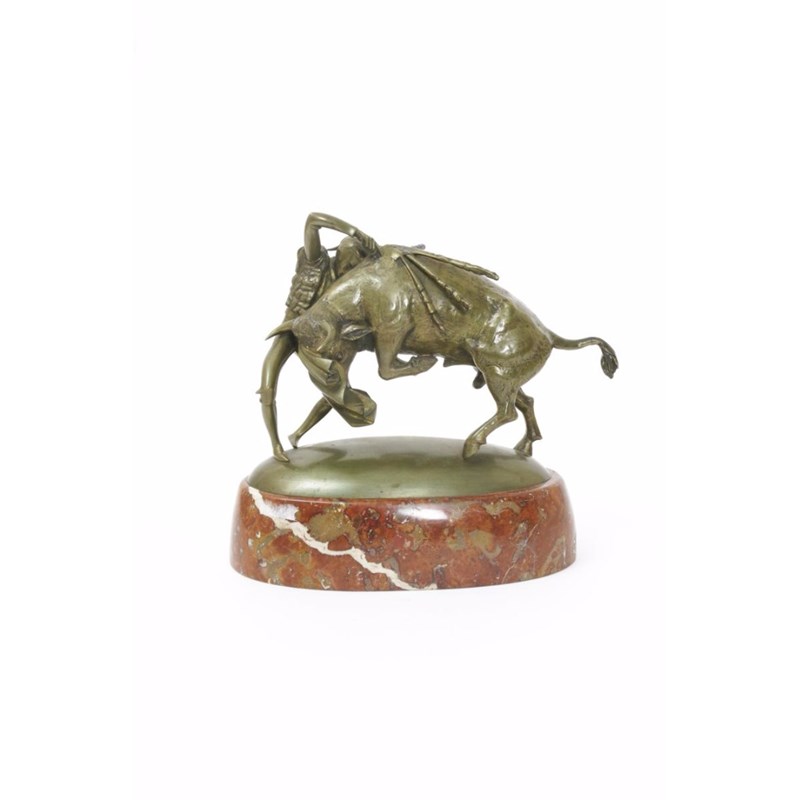 Matador and Bull a bronze sculpture cast from a model by Albert Allmann
