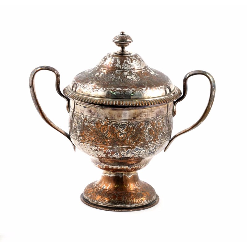 A Duchess of Sutherland Cripples Guild electroplated copper twin-handled cup and cover