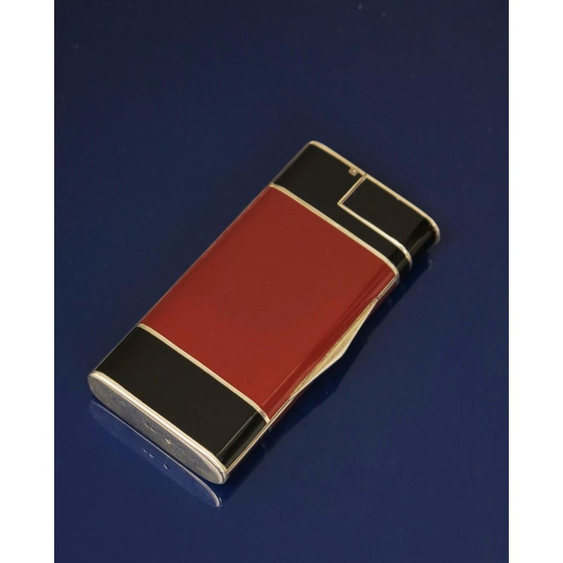 A rare Alfred Dunhill silver and enamel cigarette case and lighter combination, the hinged cigarette compartment enamelled red, with black enamelled ends, stamped marks, London 1929, 9.5cm. long