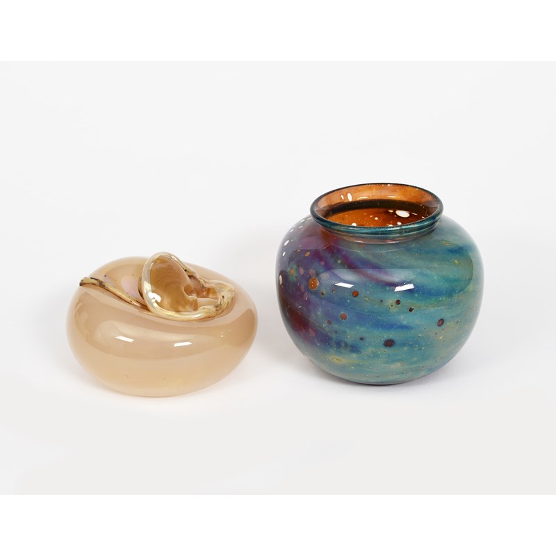 an ovoid vase, dated 1977, ovoid with flaring rim, streaked green and blue glass cased in clear, with air bubble inclusions, a glass vase by Barry Cullen, and a collection of glass