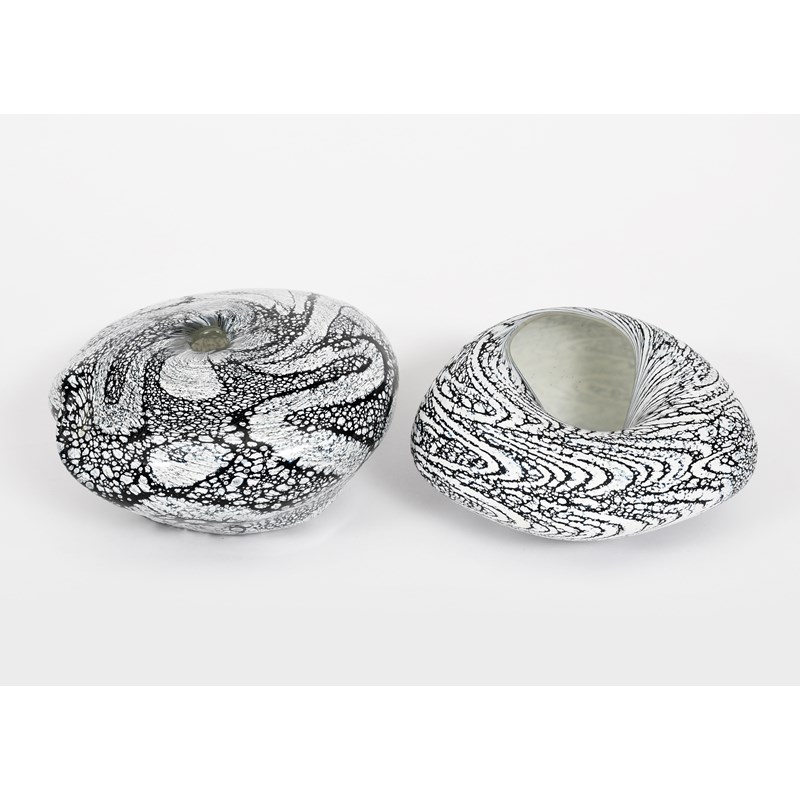 a glass vase, dated 1986, irregular compressed form, white glass surface decorated with black, another similar and a collection of contemporary glass,