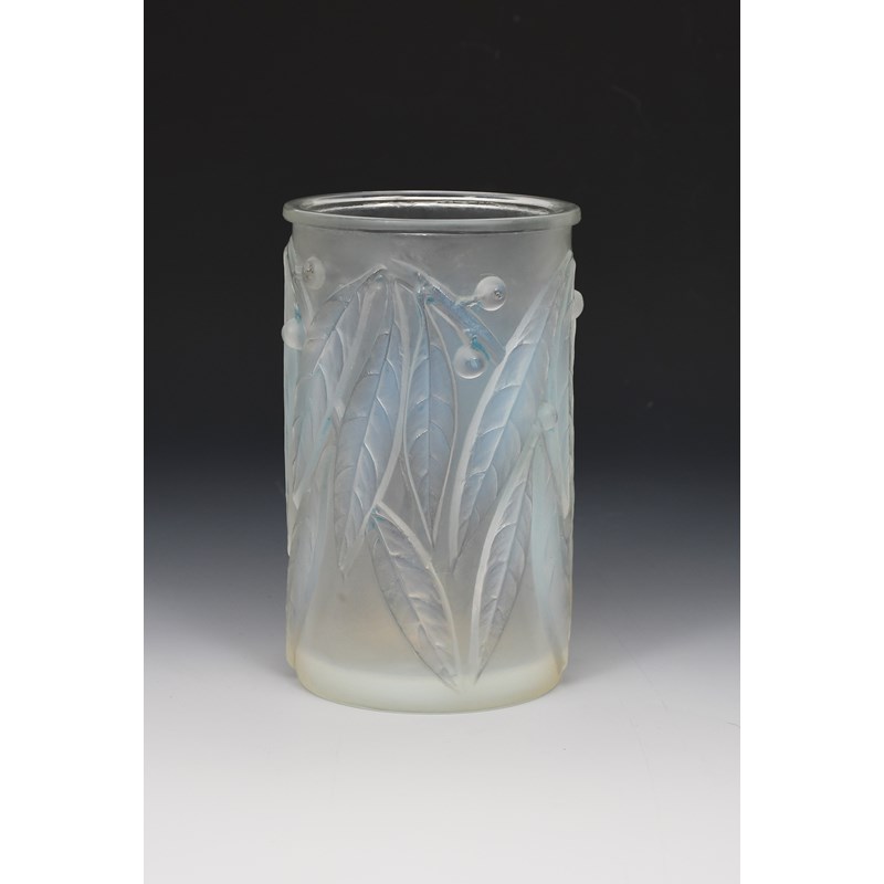 'Laurier' no 947 a Lalique opalescent glass vase designed by Rene Lalique, moulded in relief, wheel-cut R Lalique France to side, 17.8cm. high