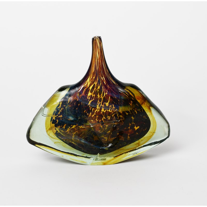 Φ A Mdina Glass Fish vase designed by Michael Harris, mottled blue and brown glass cased in clear