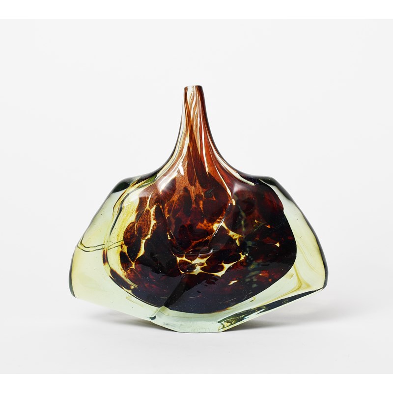 Φ A Mdina Glass Fish vase designed by Michael Harris, dated 1978, streaked ochre and blue, cased in clear, textured glass etched Mdina Glass 1978, 20.5cm. high