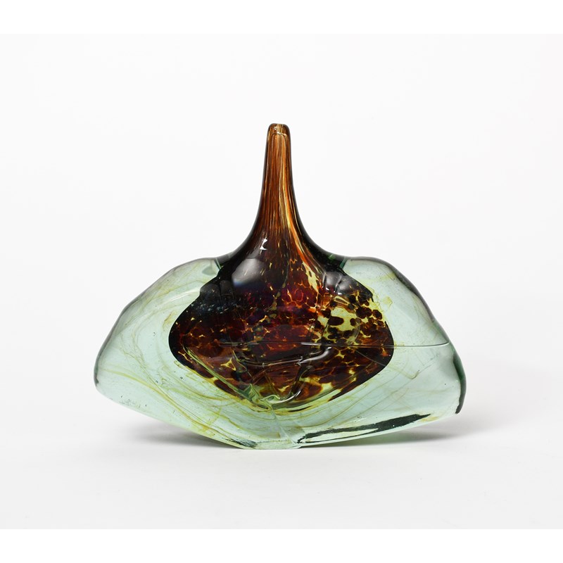 Φ A Mdina Glass Fish vase designed by Michael Harris, dated 1977, mottled brown glass cased in clear