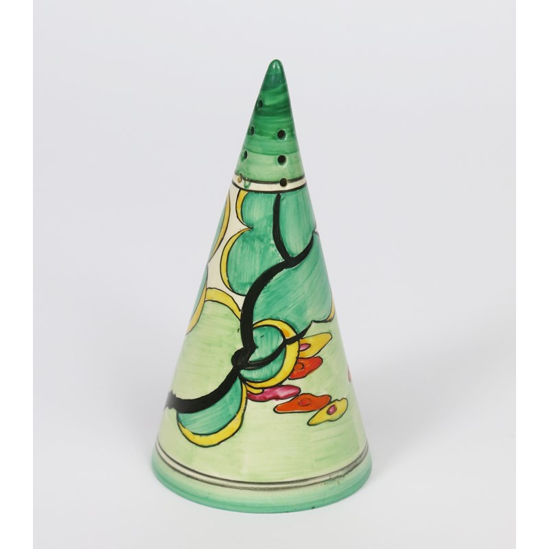 'Green Erin' a Clarice Cliff Conical sugar sifter