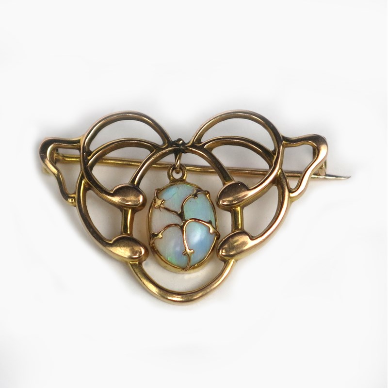 An Art Nouveau Barnet Henry Joseph 9ct gold and opal brooch