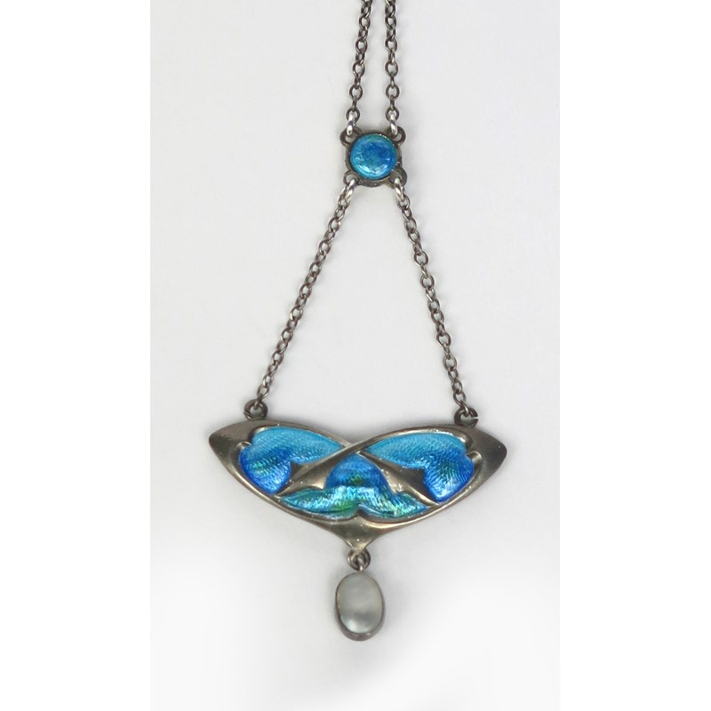 An Art Nouveau Pendleton & Sons silver and enamel pendant necklace