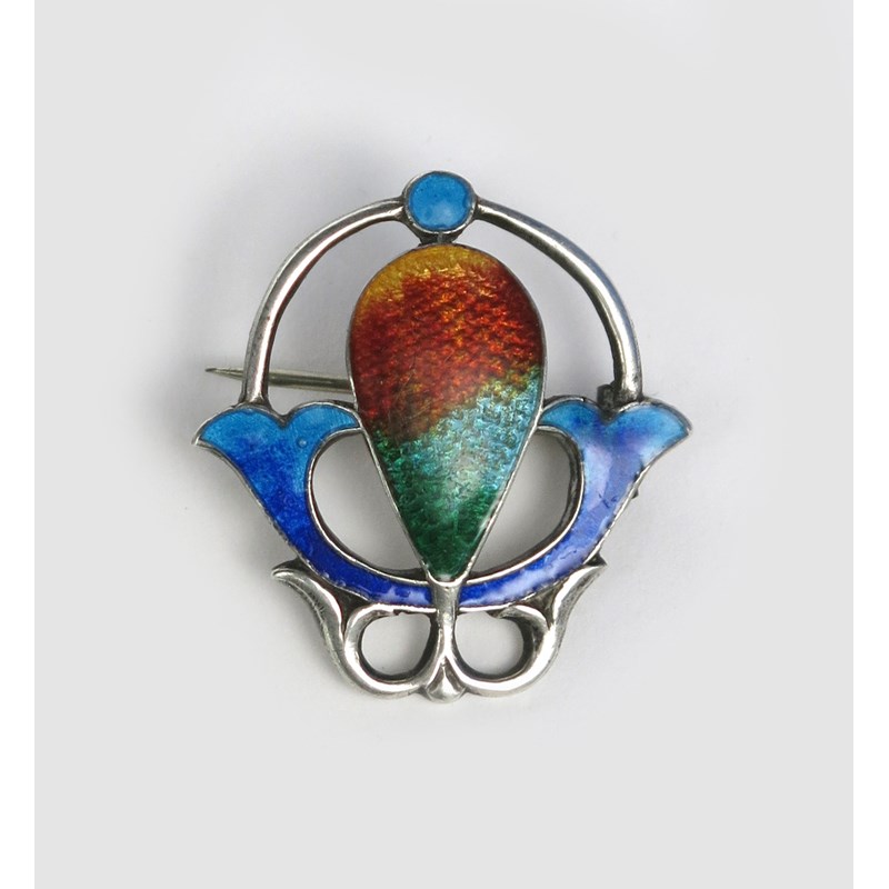 An Art Nouveau James Fenton silver and enamel brooch