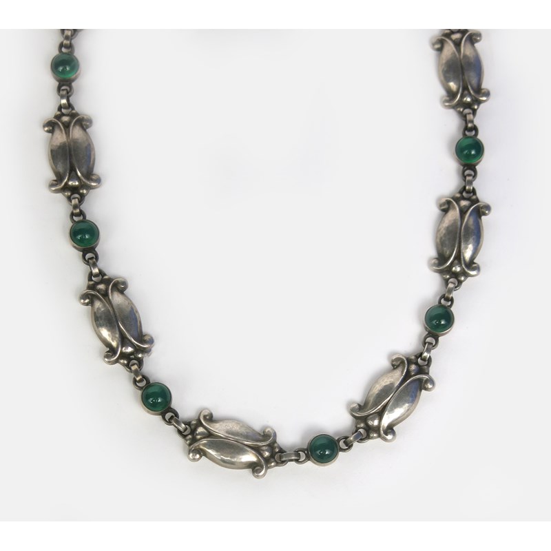 A Georg Jensen silver and chrysoprase Seed and Pod necklace designed by Georg Jensen