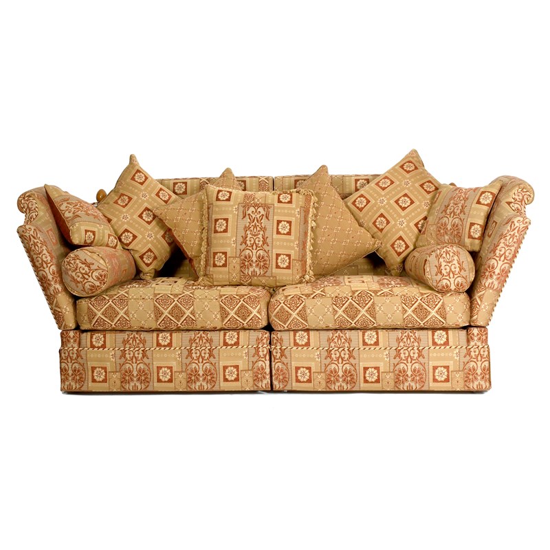 A modern Knole settee, fabric covers and various en suite cushions, unsigned,