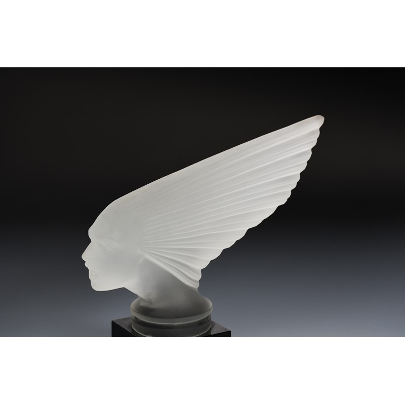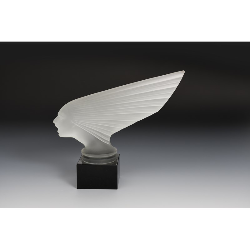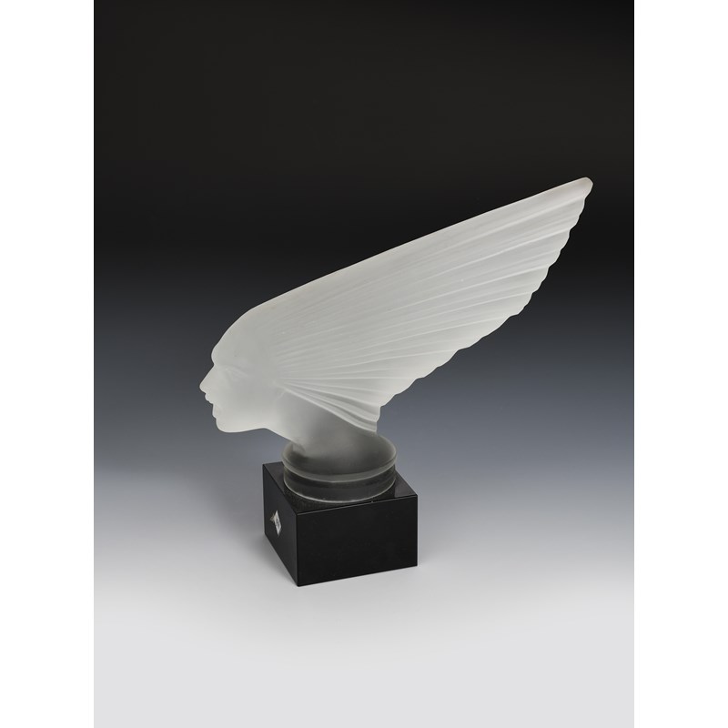 A modern Desna frosted glass Victoire car mascot after the original designed by Rene Lalique,