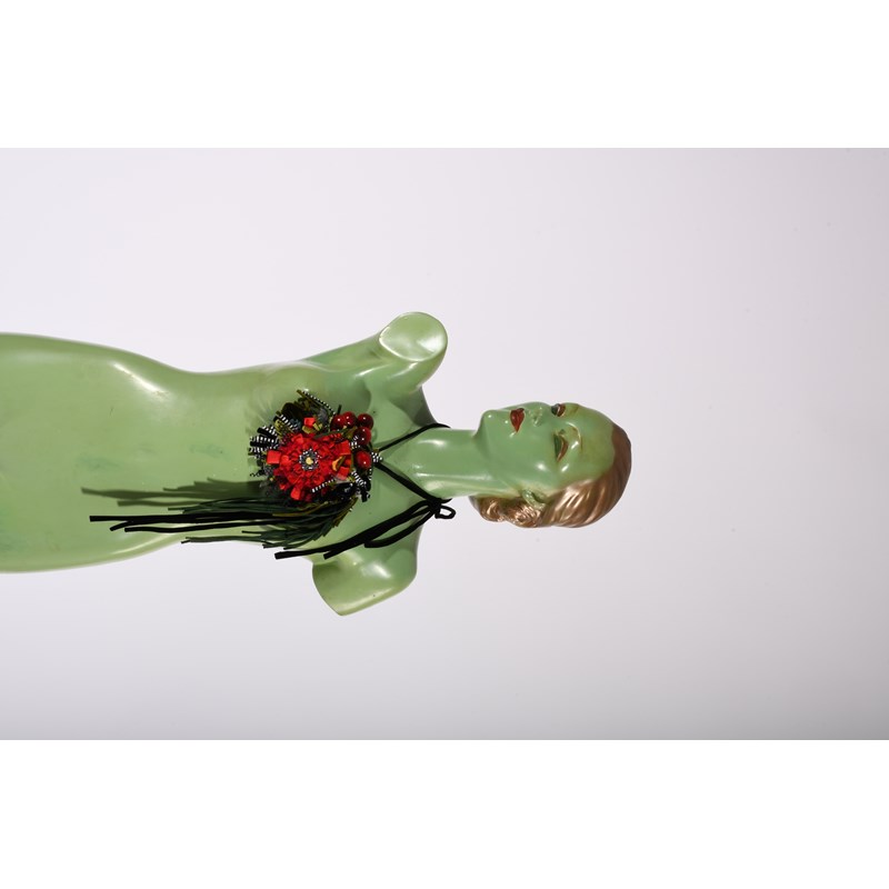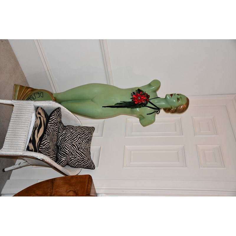 Des Beau a life size advertising figure of a young naked woman, pale green with golf and red