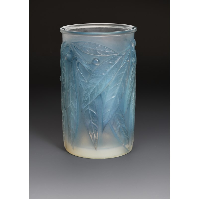 'Laurier' no.947 a Lalique opalescent glass vase designed by Rene Lalique, wheel cut R Lalique
