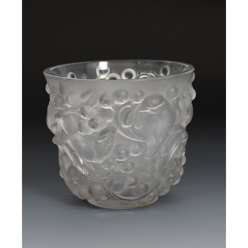 'Avallon' no.986 a Lalique clear and frosted glass vase designed by Rene Lalique, stencil R Lalique