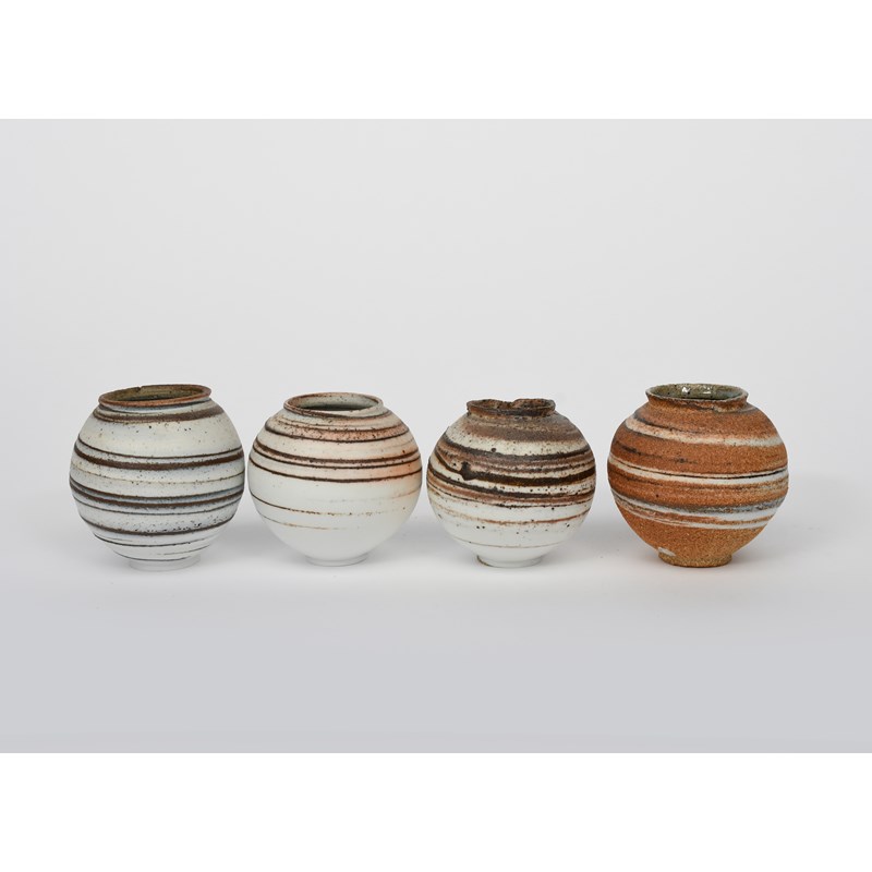 porcelain, glazed white with textured rust bands, and three others similar by Adam Buick
