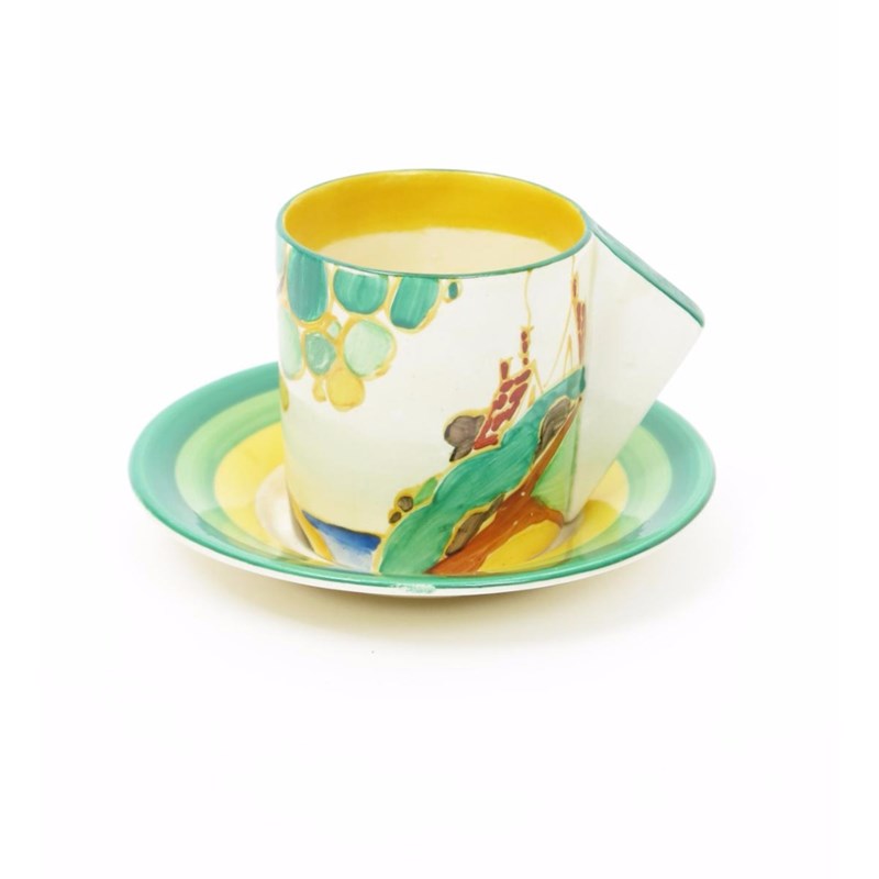 'Secrets' a Clarice Cliff Bizarre Conical coffee can and saucer