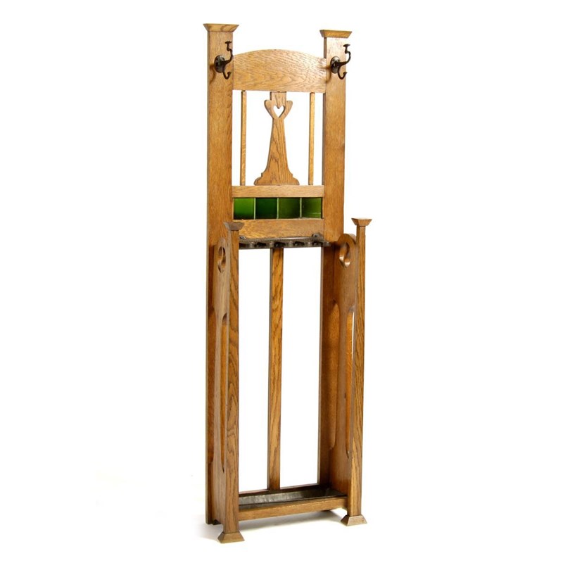 A Shapland & Petter billiard cue stand, inset with green tile border unsigned 151cm. high, 47cm. wide
