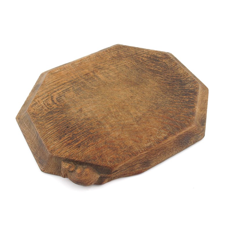 A Robert 'Mouseman' Thompson oak bread board, octagonal form, carved with mouse signature, 30.5cm. wide
