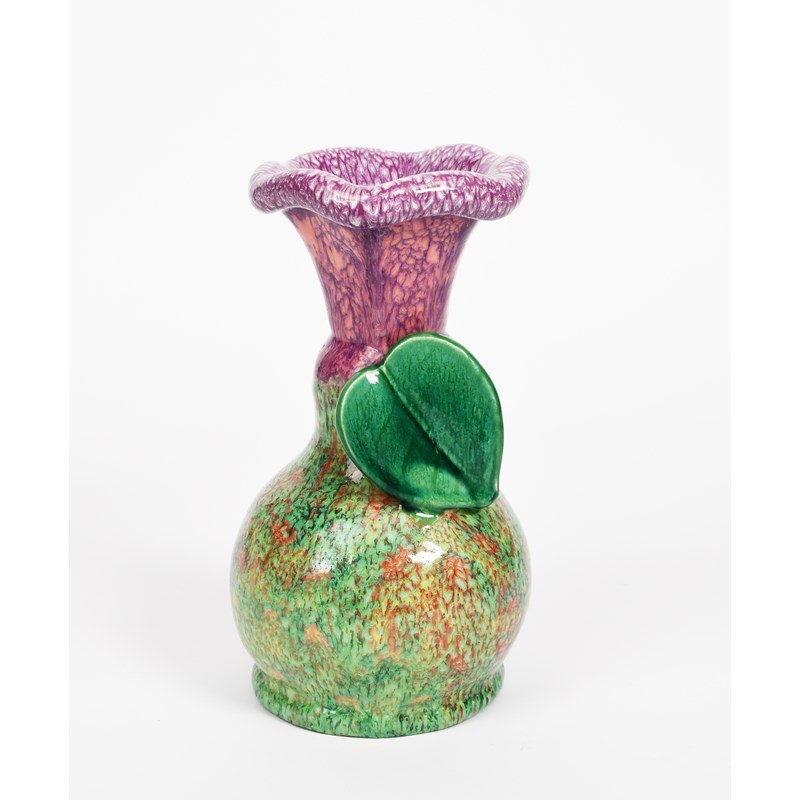 stoneware glazed with earthenware glazes modelled as a pear and leaf,