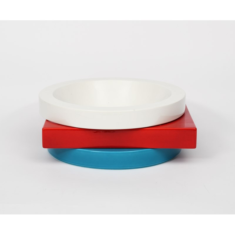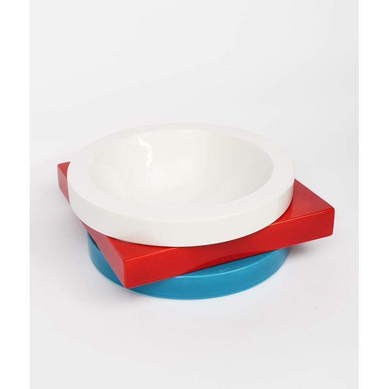 A Memphis Broccoli bowl designed by Marco Zanini, designed 1985, red, white and blue elements, printed factory mark, 33cm. square