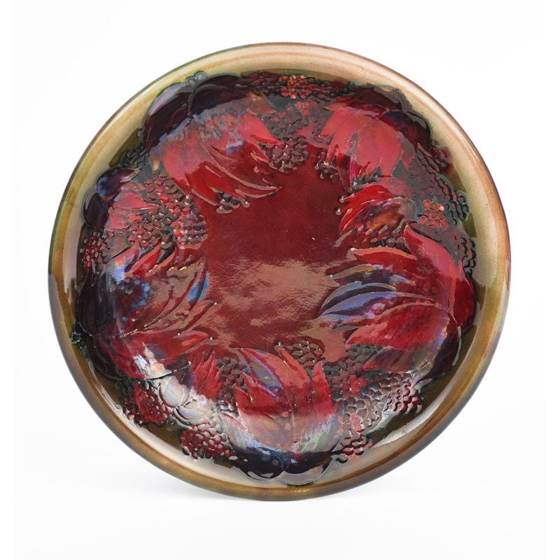'Flambe Leaf and Blackberry' a Moorcroft Pottery plate designed by William Moorcroft