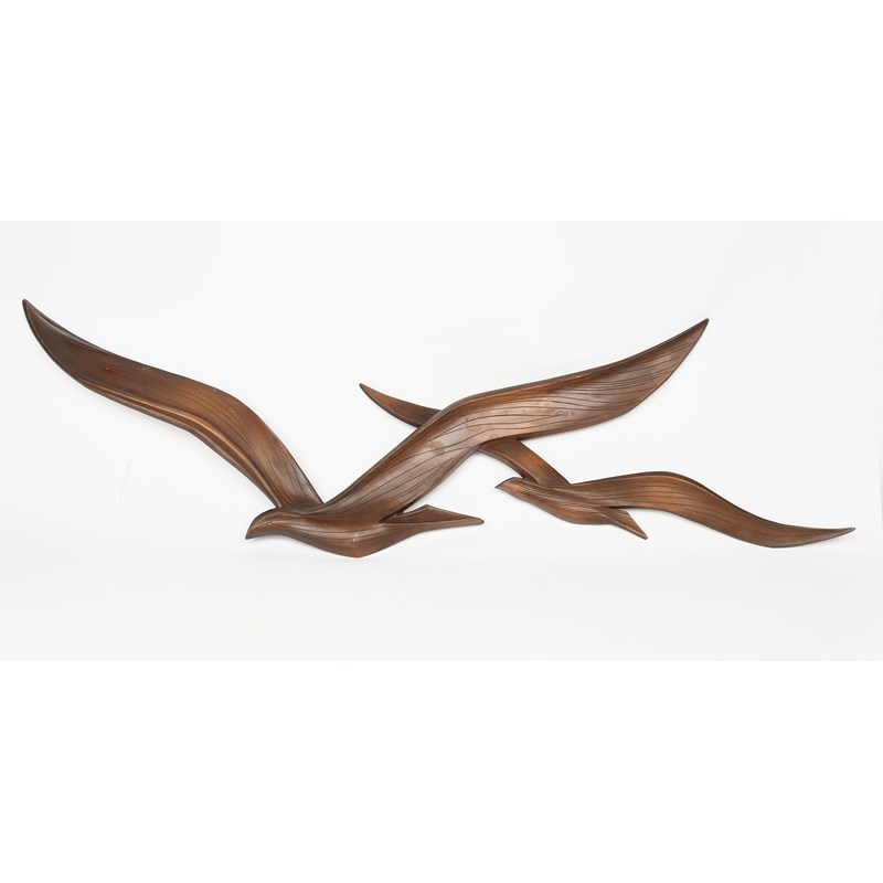 An American patinated bakelite wall sculpture, modelled as two flying stylised birds, cast marks to back,