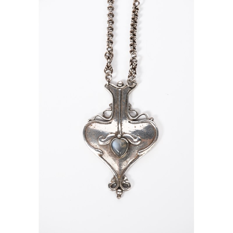 An Edgar Gilstrap Simpson Arts and Crafts silver and moonstone pendant necklace