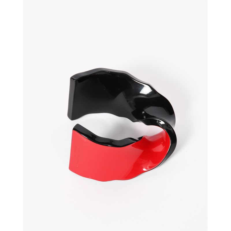 A red and black plastic bangle by Jean Marie Poinot