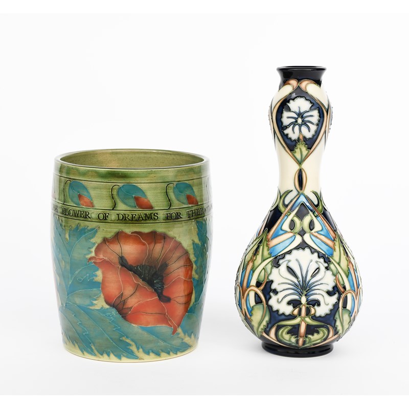 'Poppy' a Dennis China Works vase designed by Sally Tuffin vase, dated 1995, painted in colours, and a modern Moorcroft double gourd vase painted with carnation, painted marks, 15.5cm. high (2)