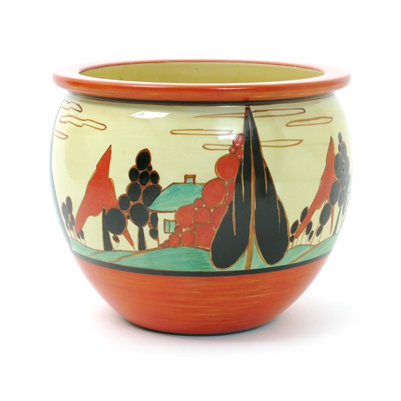 'Red Trees and House' a Clarice Cliff Fantasque Bizarre Bowness jardiniere