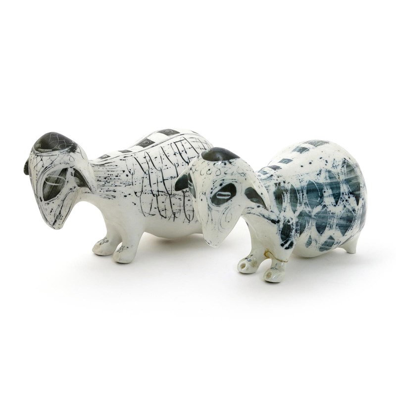 Two Richard Parkinson Pottery sheep models designed by Susan Parkinson