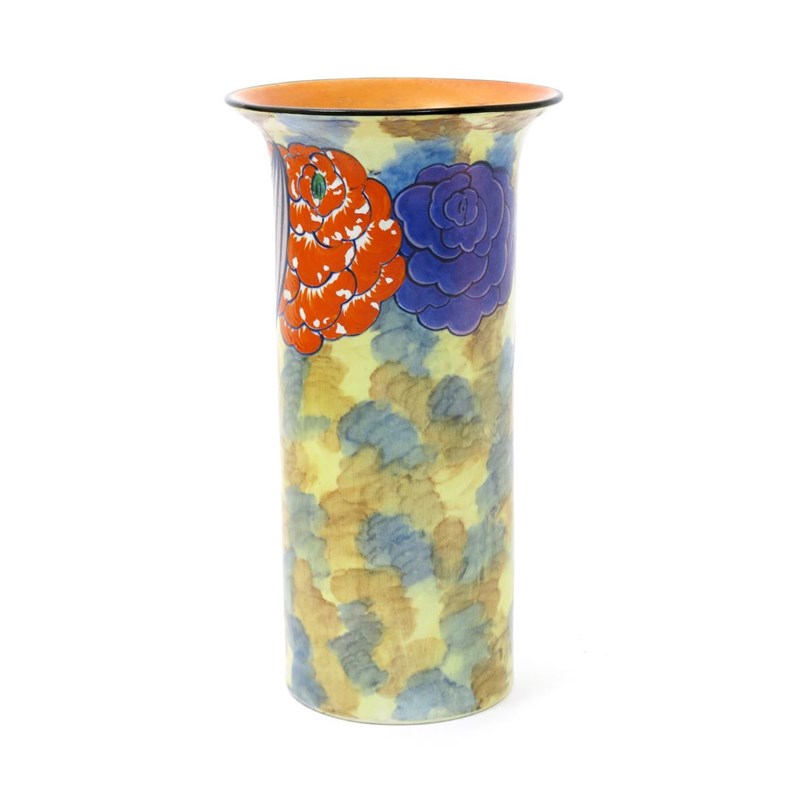 A Wilkinson Tahiti 194 vase designed by John Butler, pattern no. 8488, painted with a band of chrysanthemum flowers in colours on a mottled ground, impressed model no. and painted pattern mark, minor paint flakes, 28.5cm. high