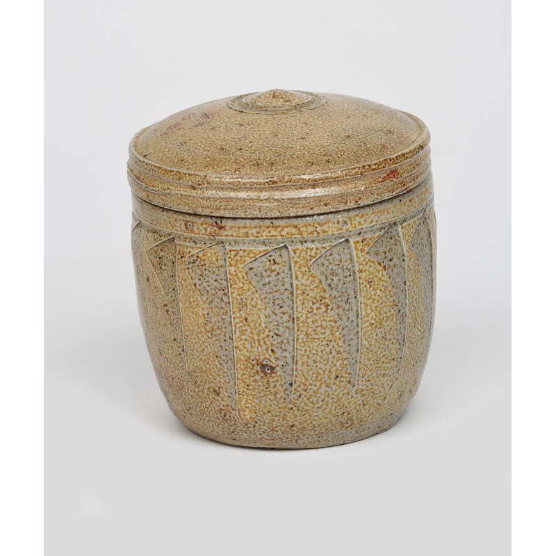 a cut-sided stoneware caddy and cover, glazed to the foot with ash