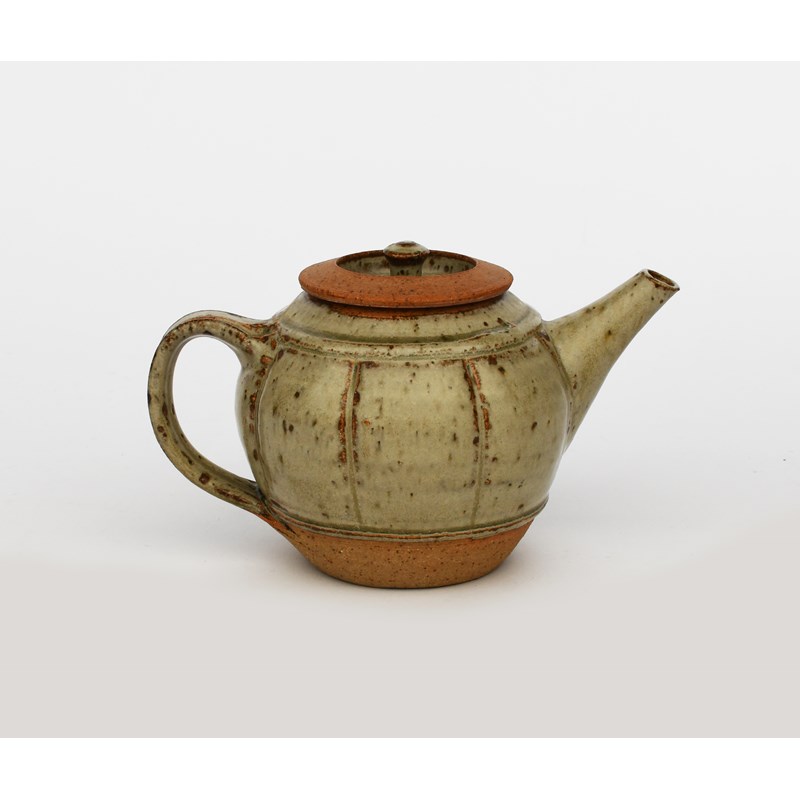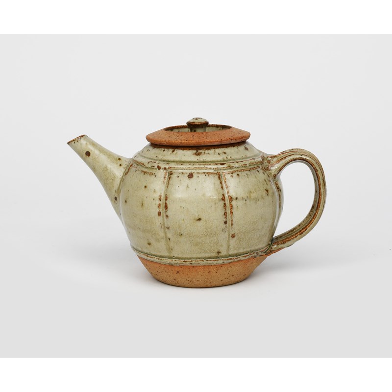 a salt-glaze stoneware Melon teapot and cover, covered to the base with a speckled ash glaze