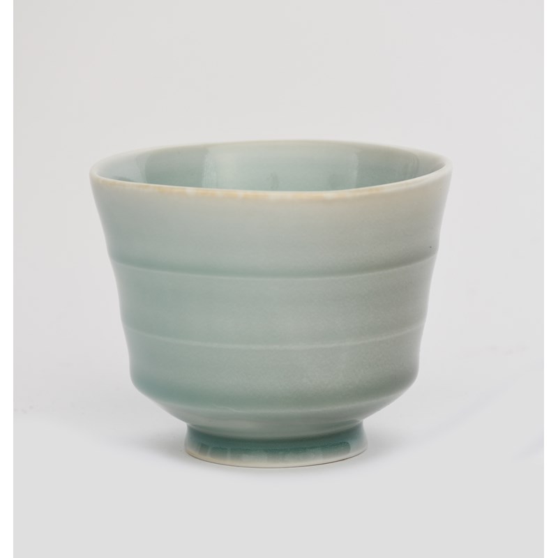 a porcelain unomi, footed form covered in a blue celadon glaze