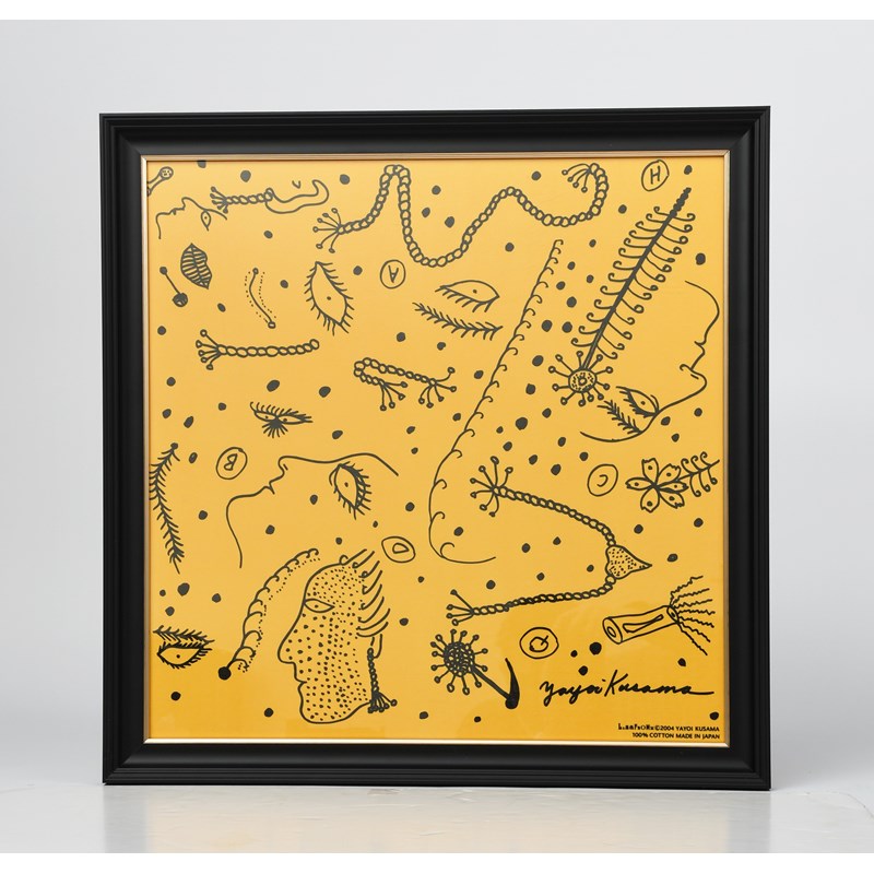 screen print on orange cotton, framed
